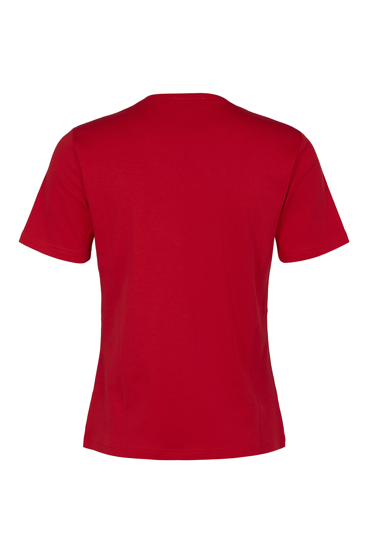 T-shirten er med et kort ærme og rund hals. Modellen er helt enkel.