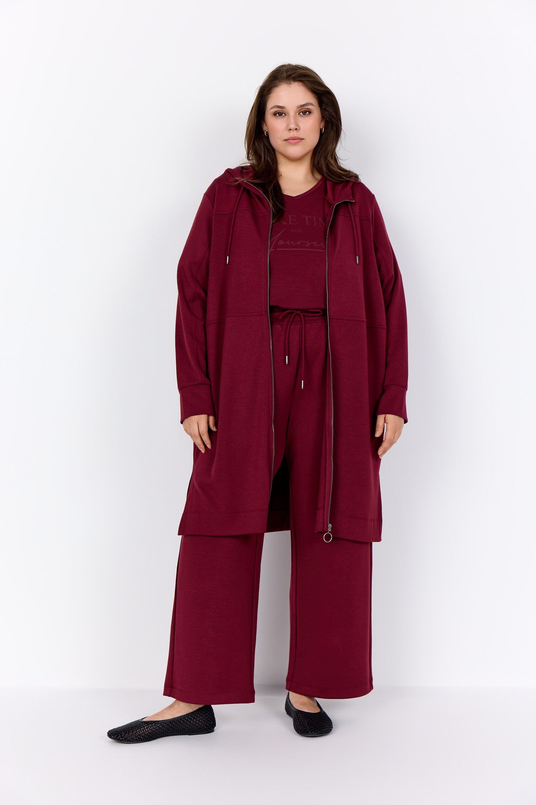 Cardiganen har en hætte med justerbare snore.