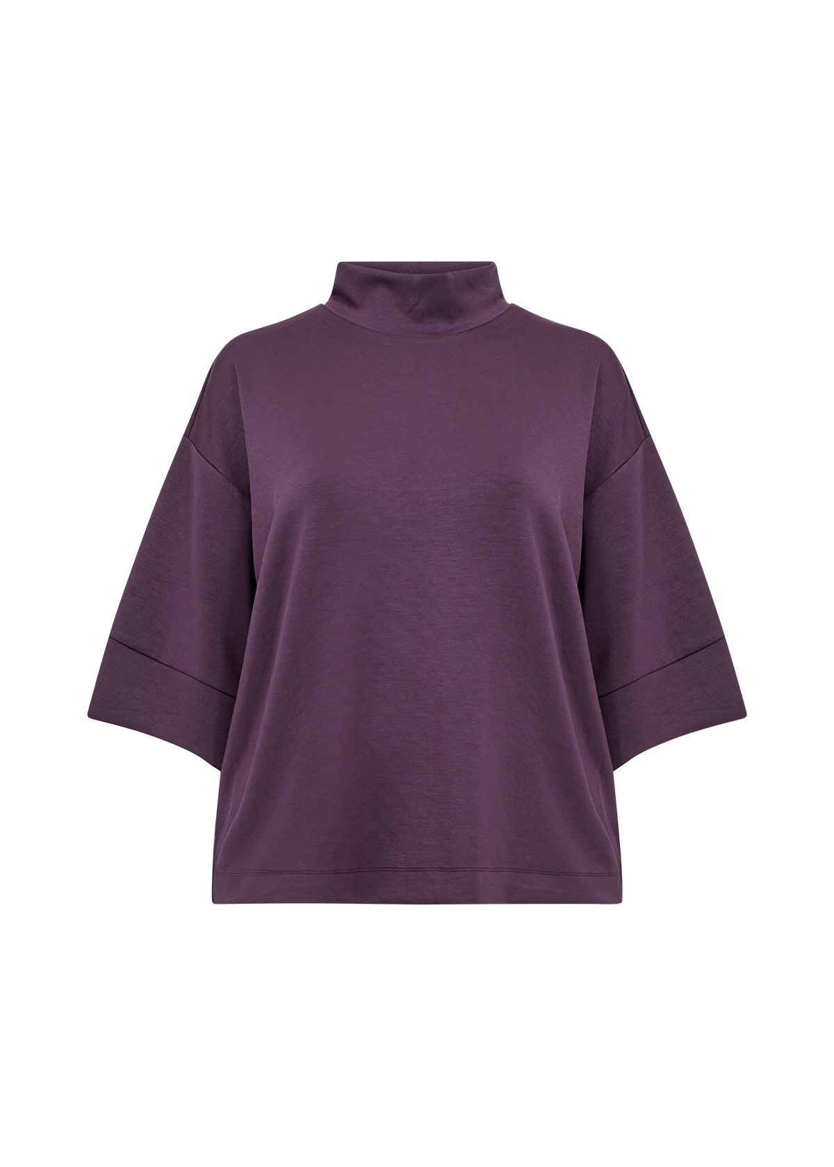 T-shirten har en stilfuld mock hals dvs. kraven er højere end en almindelig rund hals, men kortere og blødere end en rullekrave. Det giver et stilrent udseende.