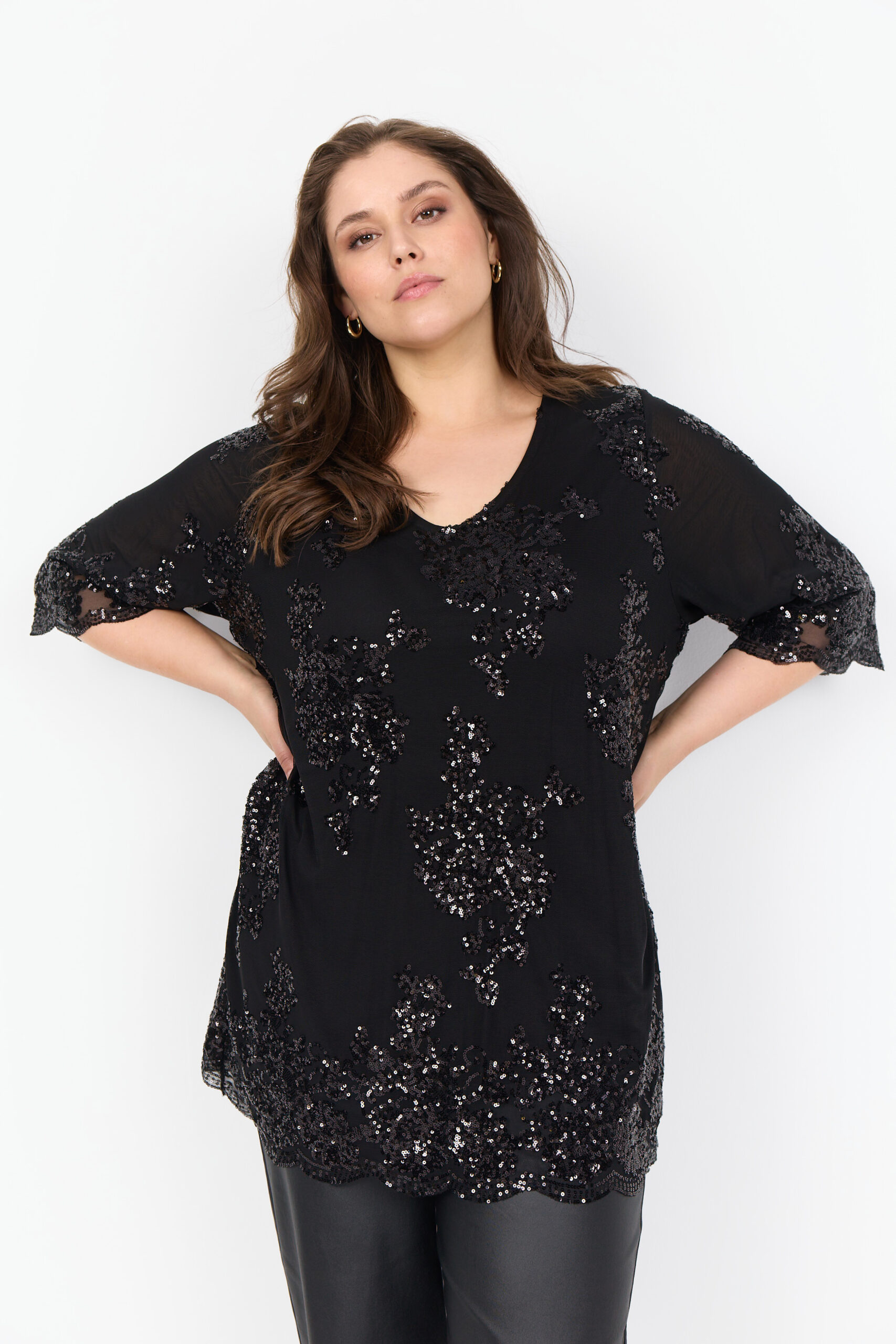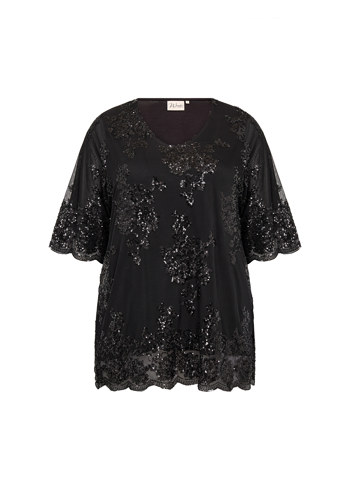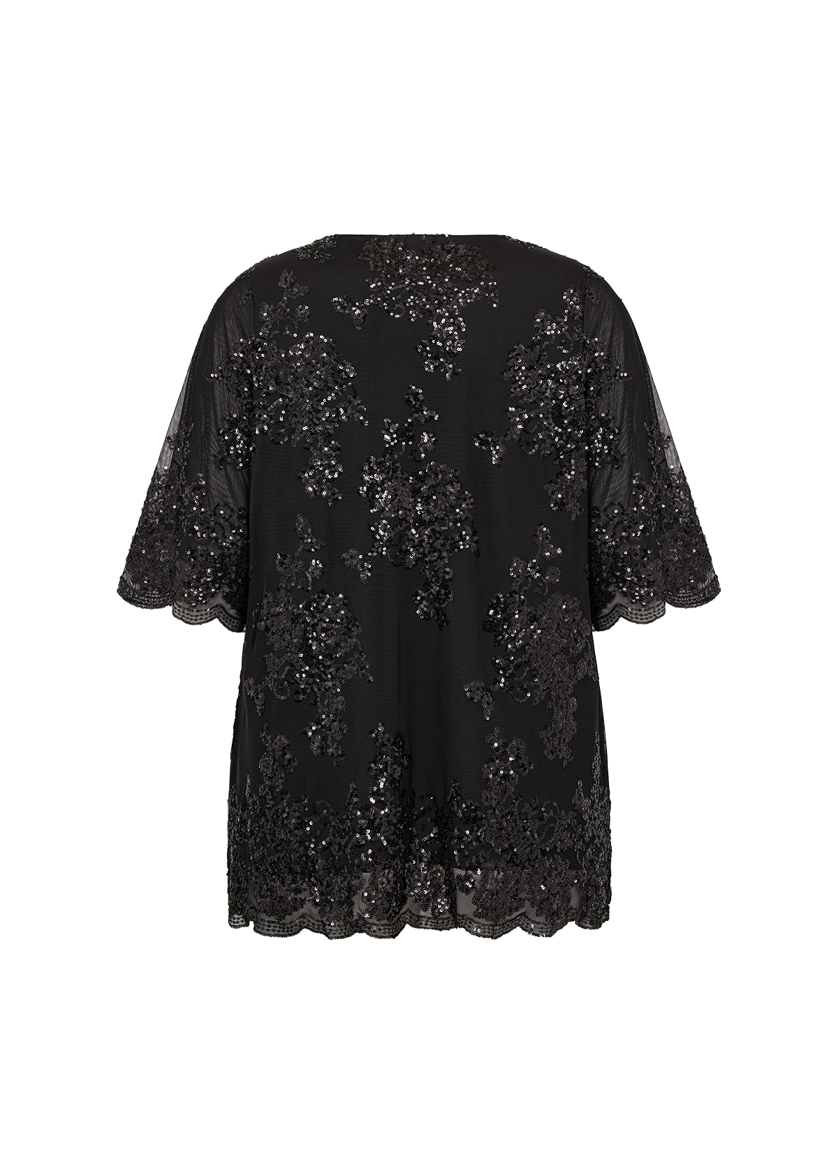 Denne elegante bluse har korte ærmer, pailletdetaljer, en rund halsudskæring.